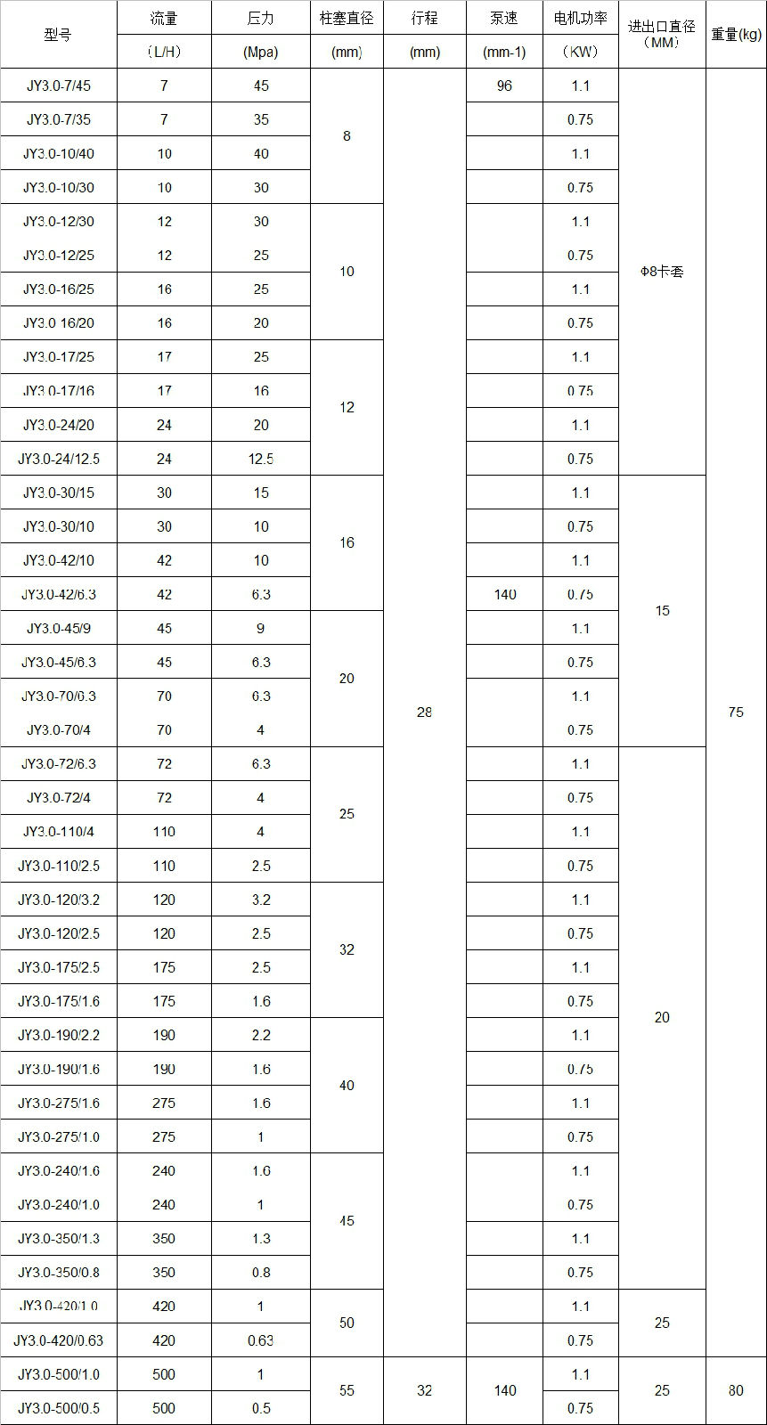 JY3.0液压隔膜计量泵,数据表。