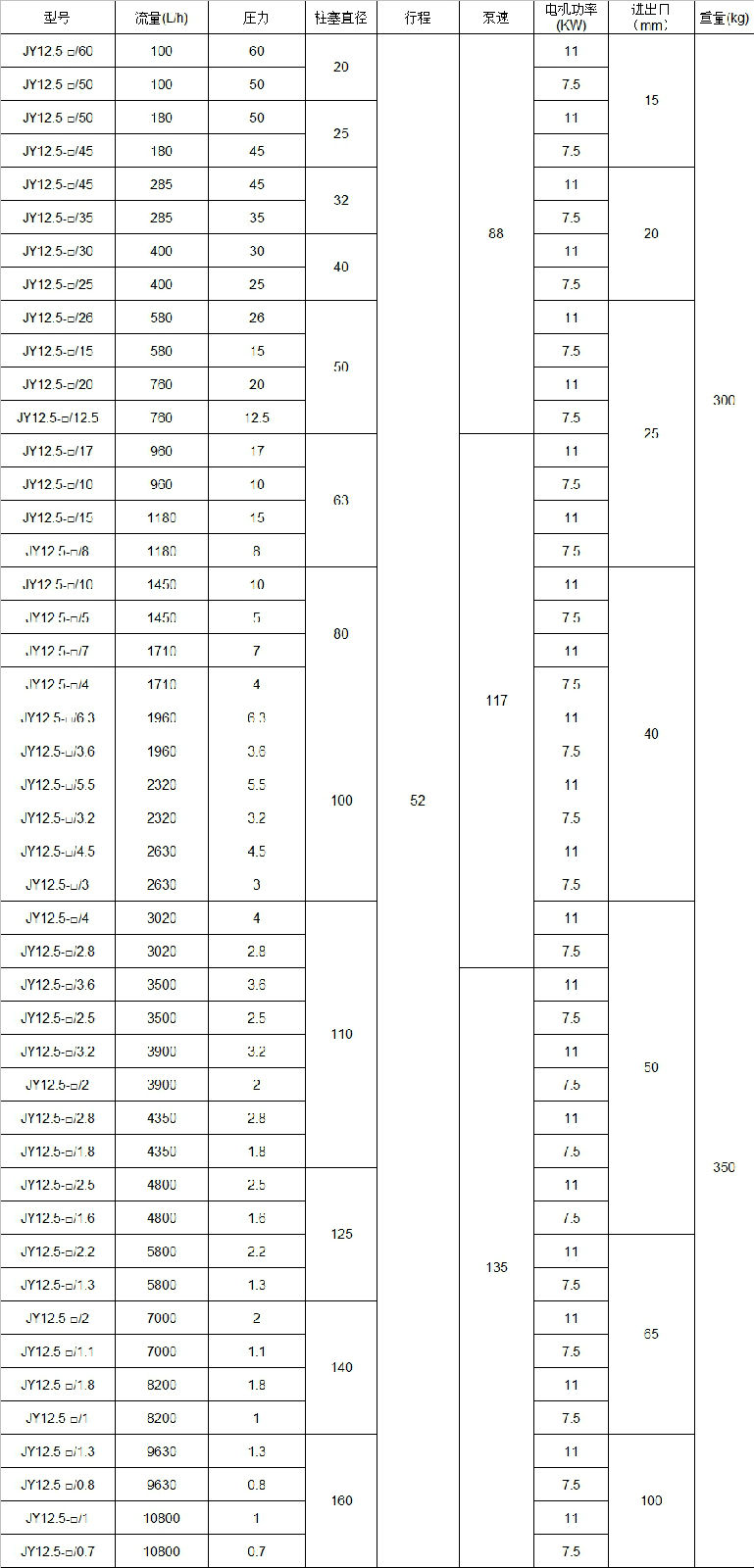 JY12.5液压隔膜计量泵,数据表。