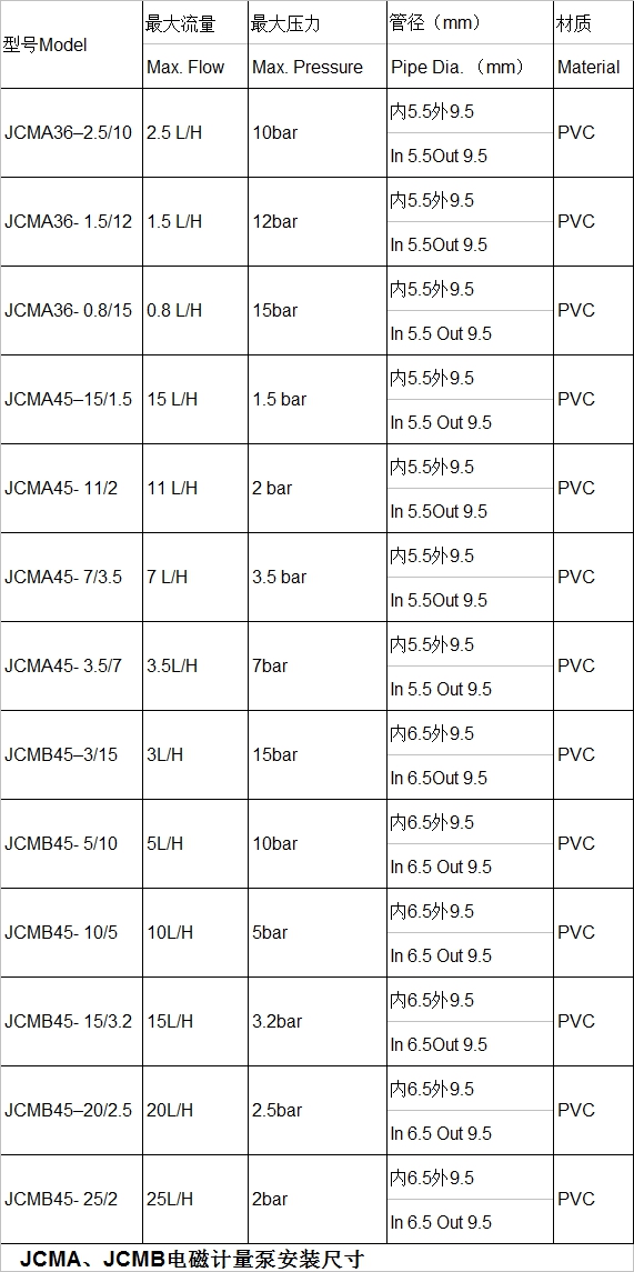 JCMA、JCMB电磁计量泵,功能特性介绍