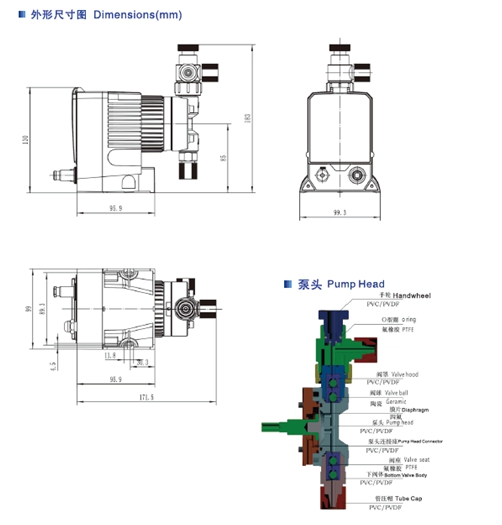可用PVC、PVDF、304SS、316SS等作为泵头材料